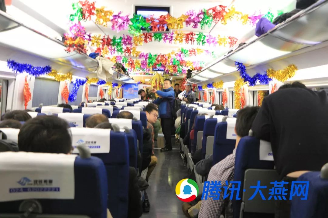 其中一节车厢被鲜艳的中国结和彩带装饰,乘务员亲切大方,面带笑容向乘客提供无微不至的服务。