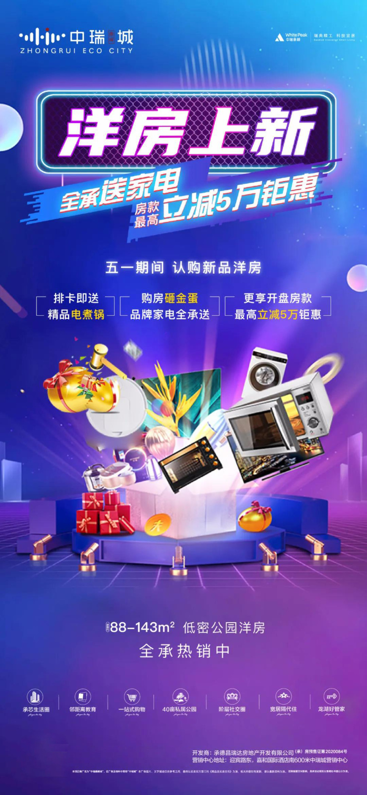 中城瑞五一购房节同步盛启!建面约101-130㎡新品洋房耀世来袭,成交砸金蛋送家电,较高钜惠5万/套,让您既轻松置业,又玩的开心!