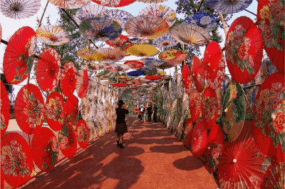 但总有一些存在,能让你耳目一新!例如戴望舒诗中的《雨巷》—— “撑着油纸伞,独自彷徨在悠长的雨巷”。可以说油纸伞伴着江南的杏花烟雨,浪漫了无数的风花雪月。在承德欢乐谷,数千把油纸伞装点的长廊,带你释放文艺情怀,邂逅江南雅韵。