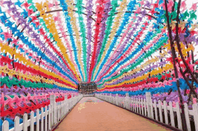 由万只风车打造而成梦幻胜境,移步异景,仿佛一条时光隧道,任由我们穿越回往昔,重温那段青葱岁月。