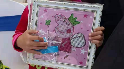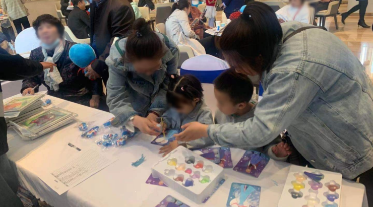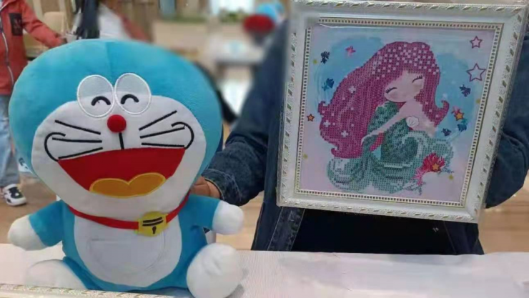 小朋友和家长们一起进行钻石画DIY