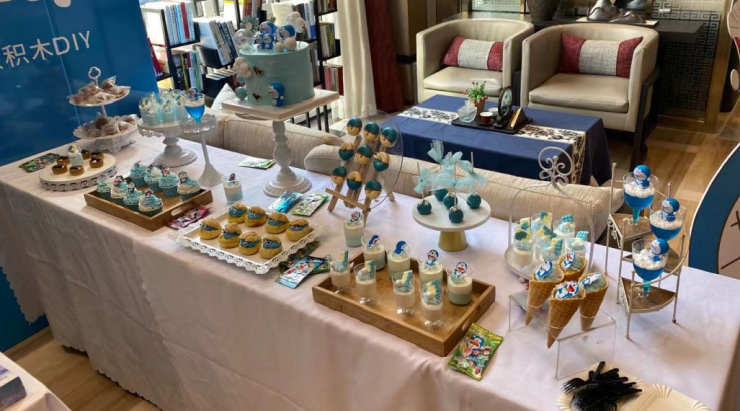 精致的茶歇甜点以及哆啦A梦蛋糕