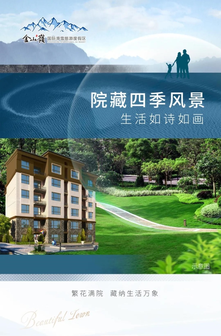 金山岭国际滑雪旅游度假区的幸福家园板块:临水雅居,一座景区里的家!临水雅居宜居绿色、健康生活、避暑养生、度假滑雪随心而用。