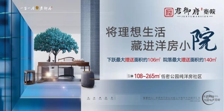 君御府·宽院108-265㎡,低密真洋房社区,下跃部分较大赠送面积约106㎡,院落较大赠送面积约140㎡,让家回归自然,满足你的院落情结。