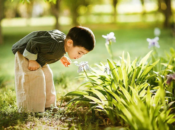 孩子在院子里追逐嬉戏热情地拥抱着春天