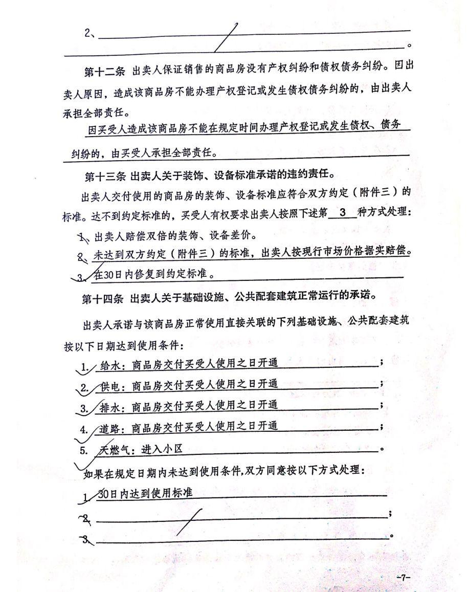 合同写明因出卖人造成不能办理产权登记,应由出卖人承担全部责任。 受访者供图按照夏先生此前与开发商签署的《商品房买卖合同》第十二条,因出卖人原因,造成该商品房不能办理产权登记或发生债权债务纠纷的,由出卖人承认全部责任。
