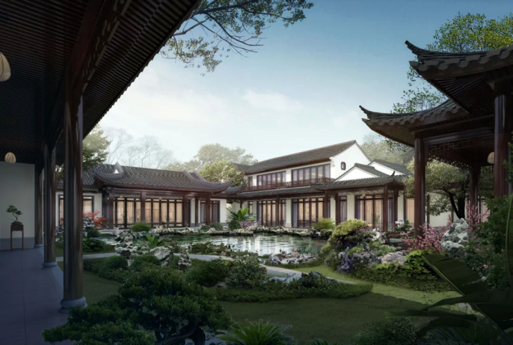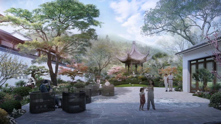 雲庐构筑纯粹江南建筑,规划约1800m2小镇中心,将成为院落文化与生活的承载,点缀多元化商家与生活配套,营造娱乐、购物、休憩、会客的社交场域。