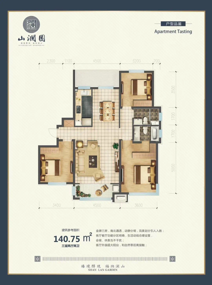 项目总占地面积17860㎡,总建筑面积45861㎡,项目共有6栋住宅高层,面积区间为79-140㎡。小区绿化率高达35%,容积率仅为2.6,避免“人来人往”式的喧哗,带来更大采光、更多的公园绿地及更广阔的观景视野。