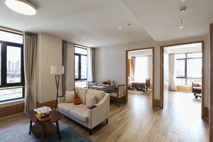 懋源天颐拥有四栋康养楼,约4万平米。首期开放1号楼,共171间房,可收住227位长者,设有开间、套间多种房型可供选择,满足不同长者及家属的需求。除了安全适老的康养设施、如家一般的轻松环境、温馨舒适的居室条件,在每一楼层及室外均设有多个休闲区域,供长者们日常交流沟通,仿佛多年的老街坊一直相伴。