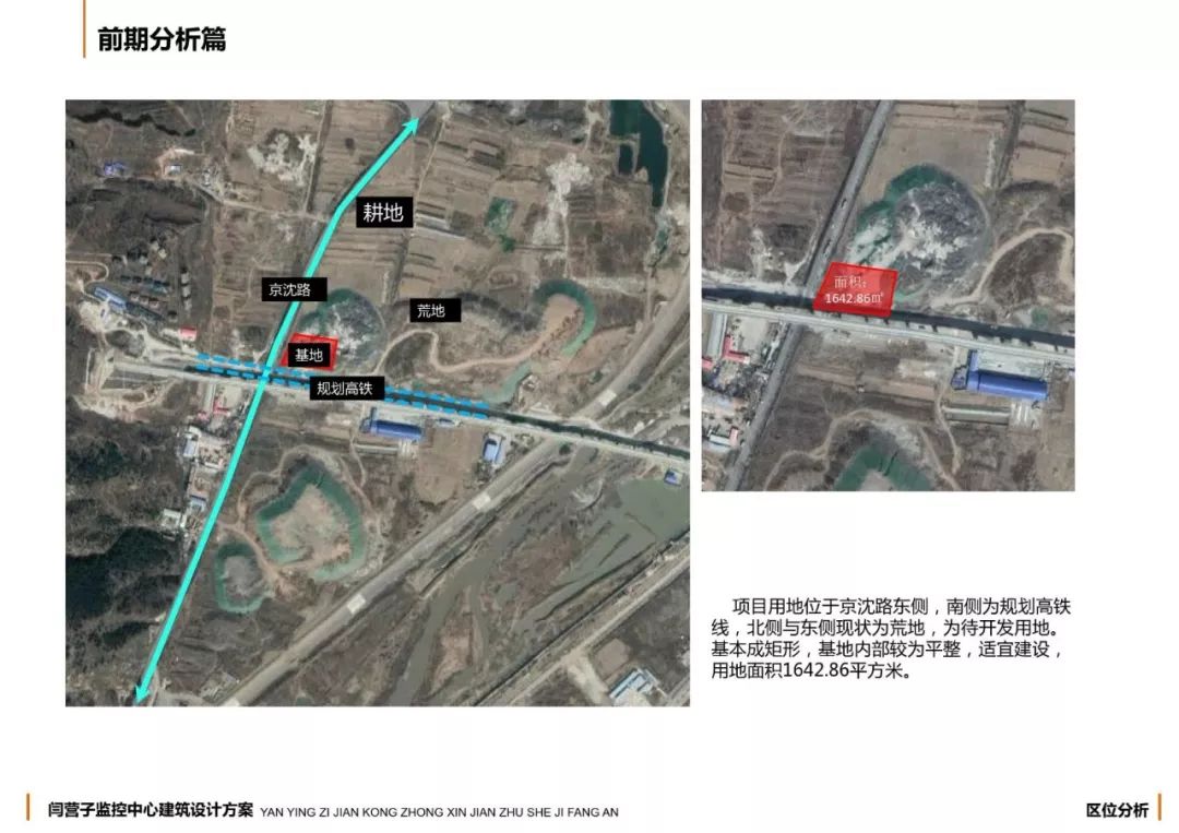 该控制中心位于闫营子地块南部,京沈高铁北侧,西邻G101国道,北、南侧为规划建设用地,总占地面积约1642.86平方米。