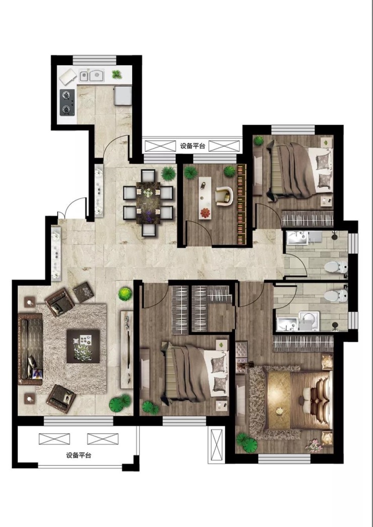 【优质尺度】餐厅、客厅分离,保证通风效果又不互相打扰,大开间客厅,宽敞大方,加宽设备平台,提升整体空间感。