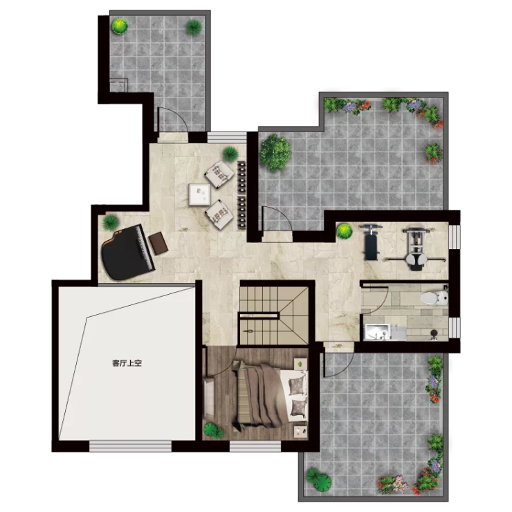 【大视野】大面积露台,优质融汇室内外空间,山水美景尽收眼底,夜色初上,尽享空中PARTY生活,乐趣无限延伸。