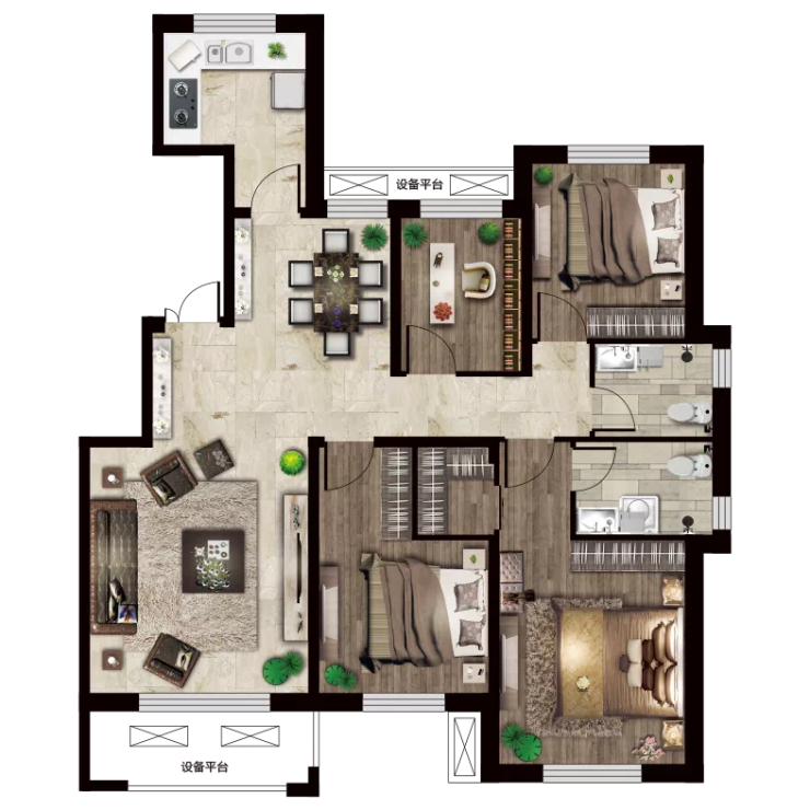 金辉府山水洋房通过精妙的布局,让居住的舒适性更高,契合每个家庭成员所需。以大面宽,三大南向开间设计,赋予业主宽景人居的舒适体验。奢阔套房式主卧,升级步入式衣帽间,满足女主人的生活梦想;主卧独立卫浴,保证了私密性和尊贵感。