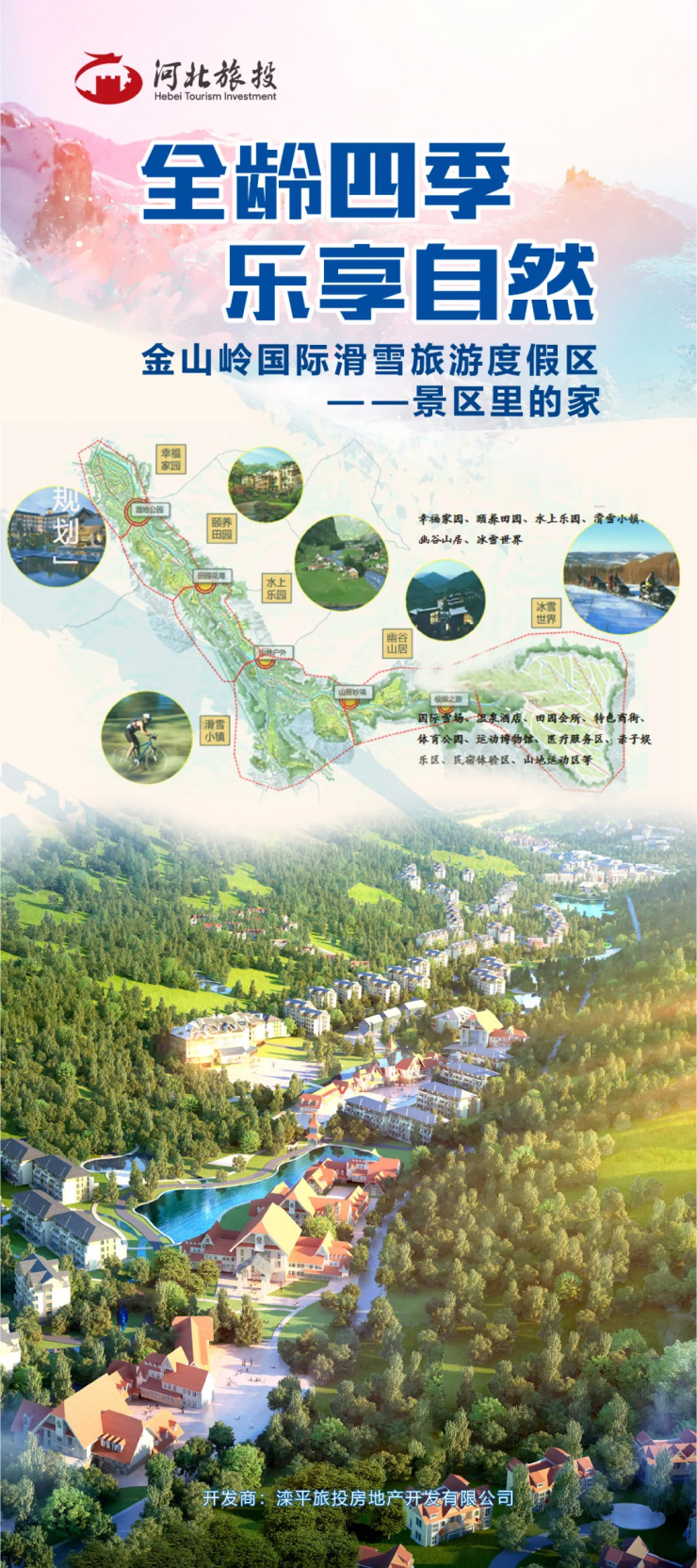 金山岭国际滑雪旅游度假区的幸福家园板块:临水雅居,一座景区里的家!临水雅居宜居绿色、健康生活、避暑养生、度假滑雪随心而用。