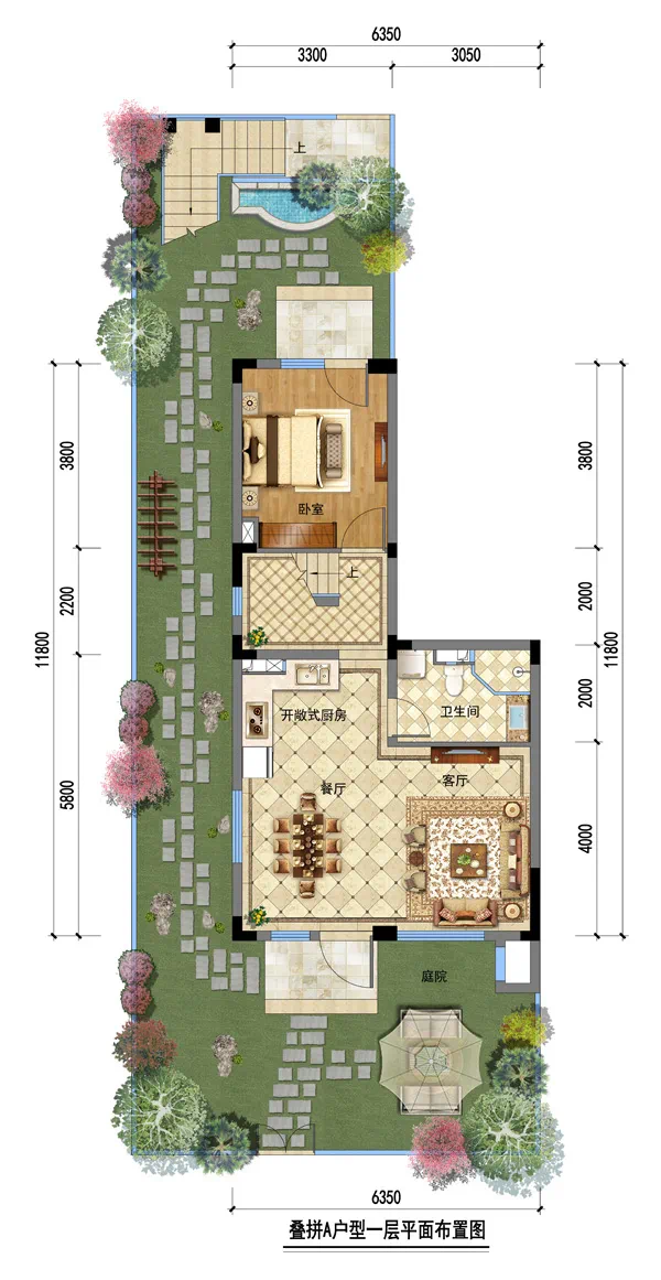 目前,临水雅居项目叠拼户型71.98~81.54平米,户型均拥有一层庭院或宽景露台。