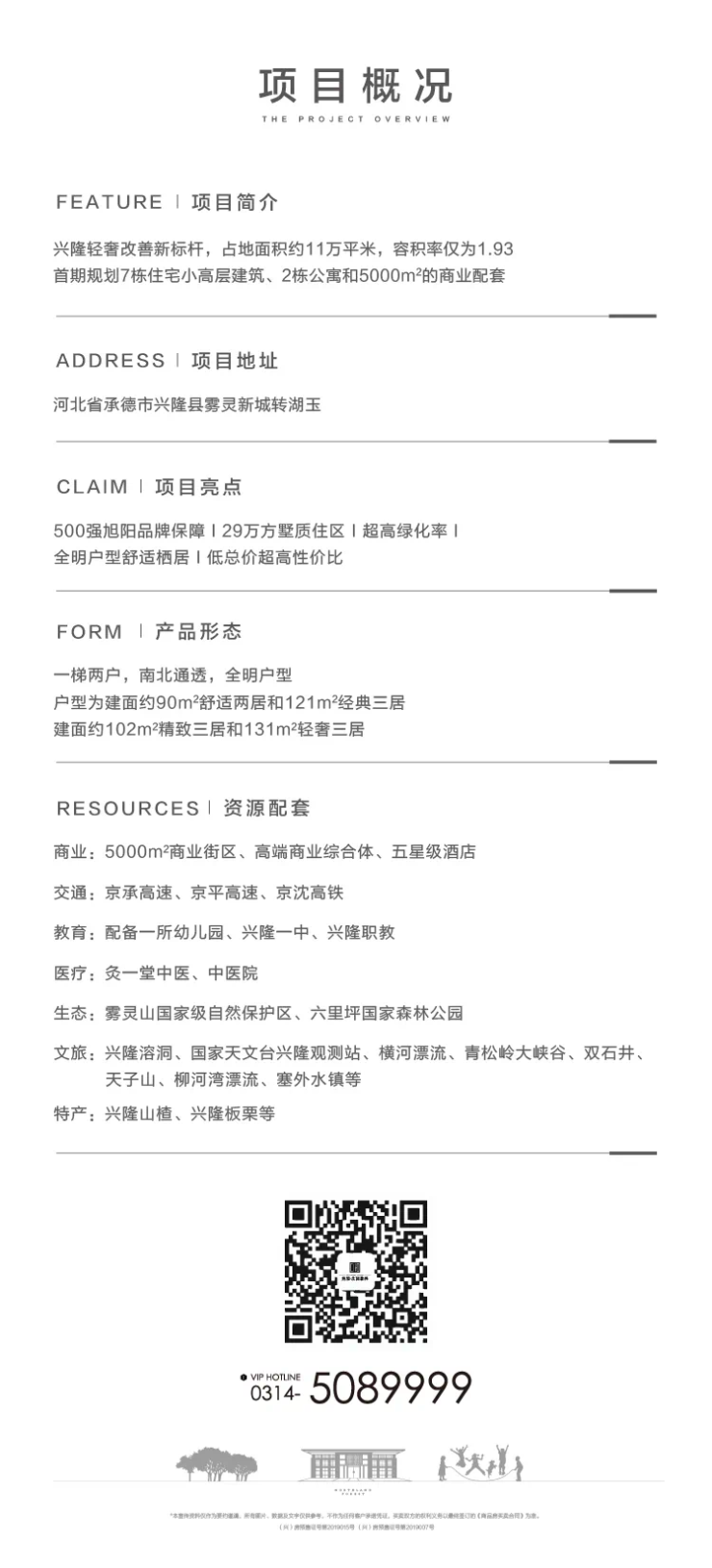 1、本项目备案名为“雾灵新城·北国森林”,推广名为“旭阳·北国森林”;开发公司:“兴隆县荣兴房地产开发有限公司”;预售证号:“(兴)房预售证第2019007号”、“(兴)房预售证第2019015号”;