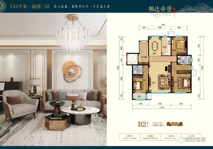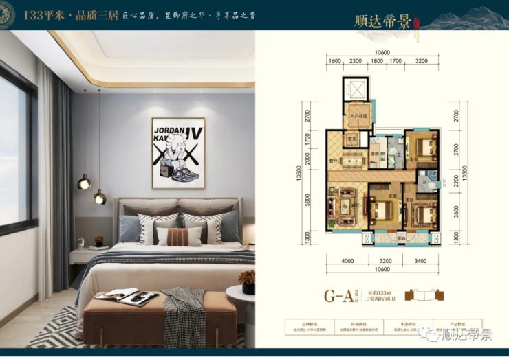 层高3.15米,整个户型建面约133平米,南北通透,一梯一户,让主人尽可能拥有较大的私密空间,奢华三阳面,尽显尊贵生活,全明厨房紧邻餐厅,美味生活加速传递,动静分区,功能分区合理,保证主人生活的私密性,卧室双阳台设计,让主人充分拥抱阳光生活,卫生间明窗通风,保证空气流通,体现唯美生活品质。