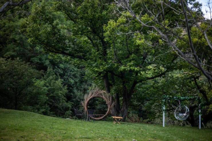 安营寨长城脚下的森林营地占据大片宽阔草坪