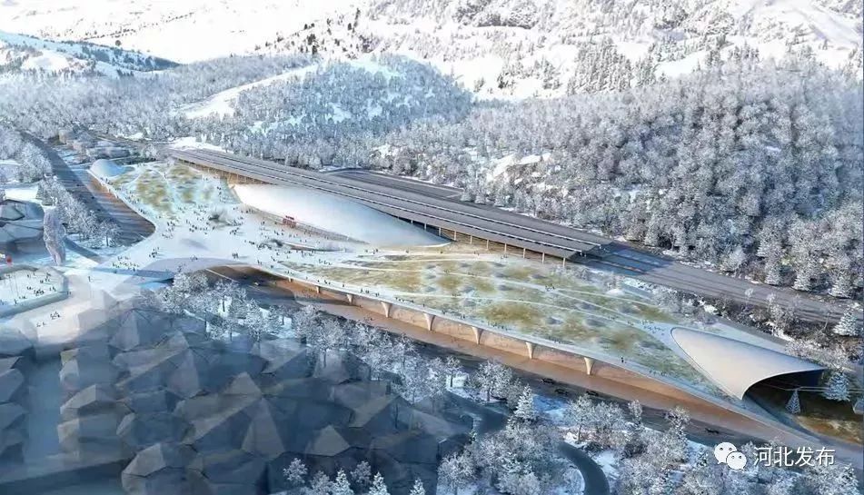 车站将“大境门”的拱门与自然地貌的弧形元素加以抽象,同时融入百年京张“人”字形铁路形象,造型意象丰富并具有动感,寓意在即将到来的冬奥会迎接世界八方来宾。